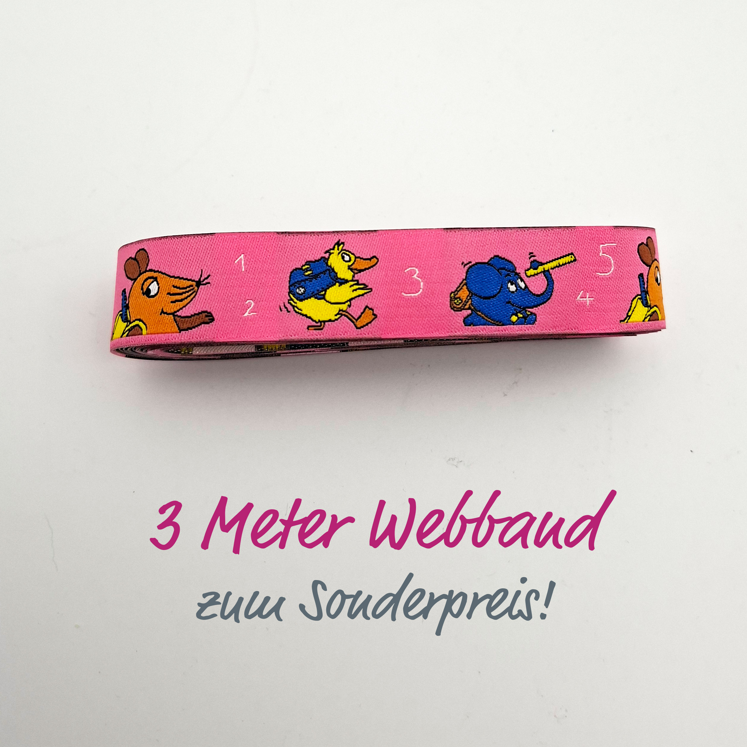 3 METER WEBBAND MAUS ABC Rosa