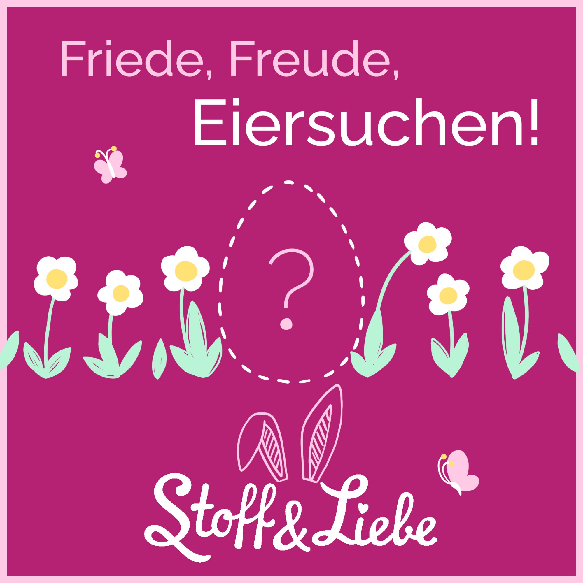 und suchst 8 Ostereier, notierst Dir die Buchstaben, die Du auf den Eiern findest, bringst sie anschließend in die richtige Reihenfolge und sendest das Lösungswort bis Dienstag, 07.04.26 10:00 Uhr per E-Mail an: aktion@stoffundliebe.de mit dem Stichwort: DICKES EI!