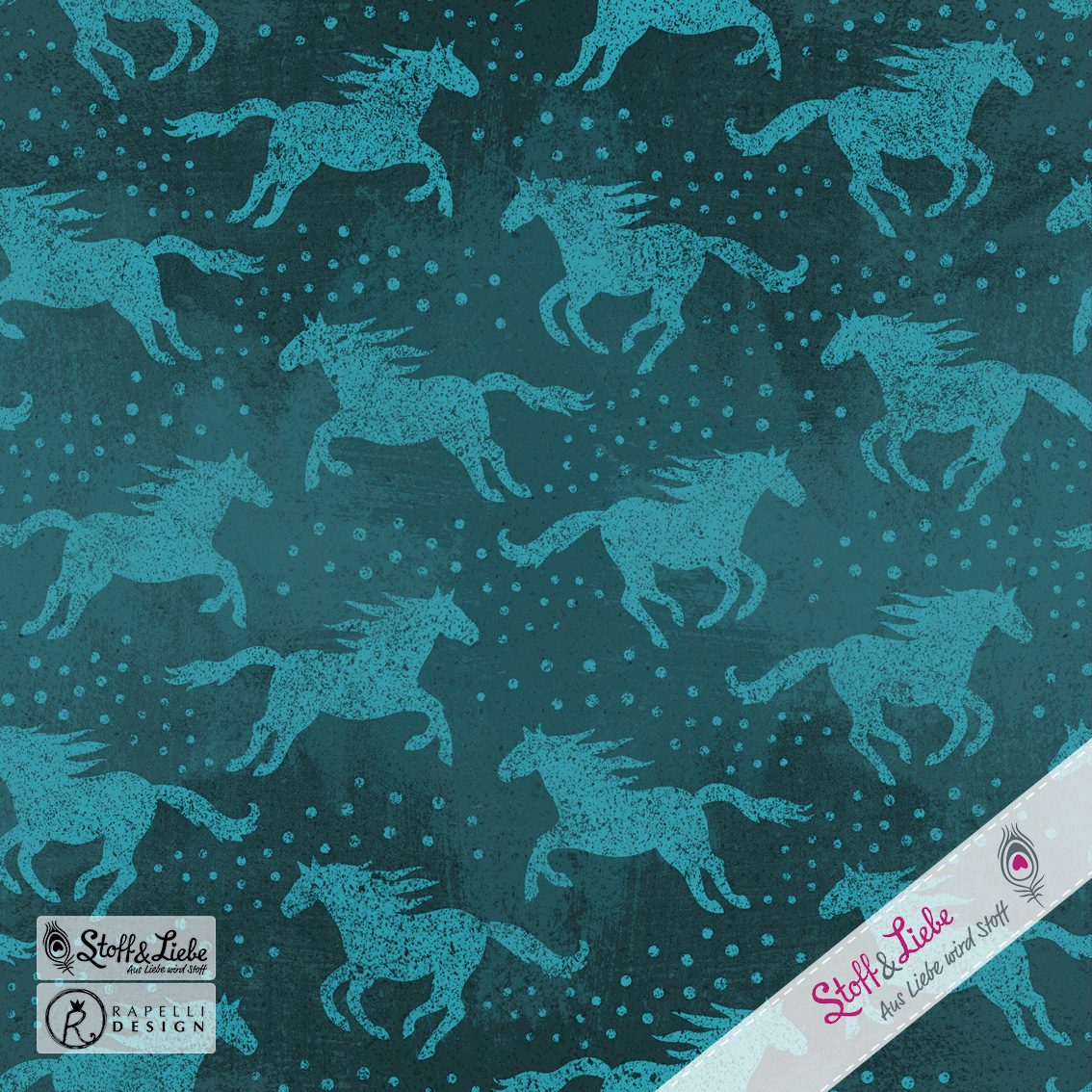 Das klassische Dreamland Horses Design erscheint in neuem Look und direkt in drei Farbvarianten: Smaragd, Beere und Kobaltblau. Shabby Horses kommen auf Jersey und bringen Dir neben einem Allover auch passende Kombistoffe.  Der Shabby Look gibt dem Stoff Tiefe und sorgt für einen ganz besonderen Look. Prima auch geeignet um ihn solo zu vernähen oder mit Bügelbildern - die wir gleich mitanbieten! -  aufzupeppen.